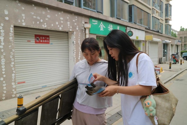 (图为实践团成员与社区居民进行交流)