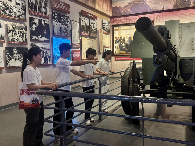 进入华东野战军总部纪念馆,成员们参观了作战时所用的刀枪和榴弹炮,了解到渡江战役的重要政治意义。