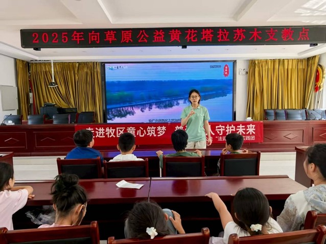 8月12日,“法润北疆”社会实践团赴内蒙古自治区通辽市奈曼旗黄花塔拉苏木支教点开展“红色记忆传承课”。