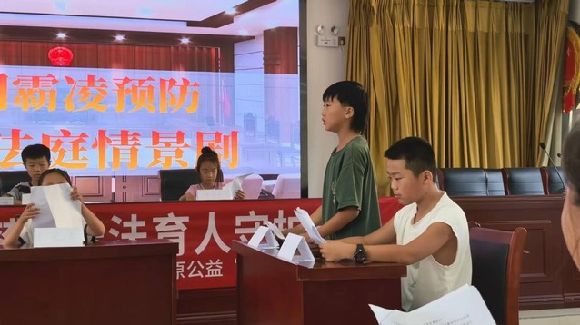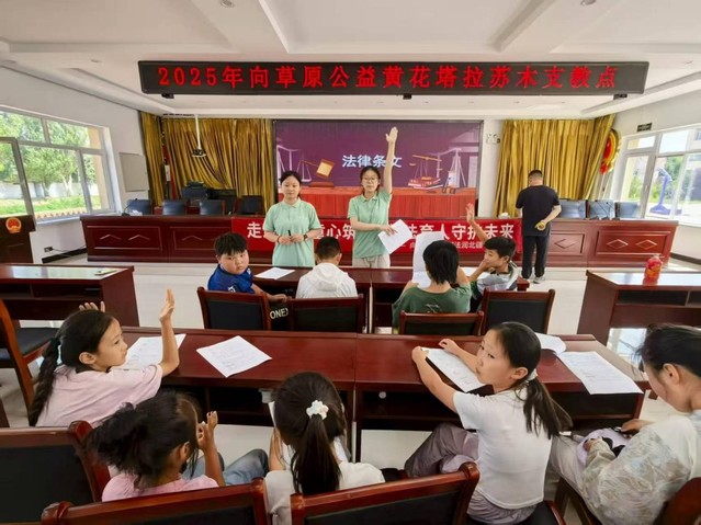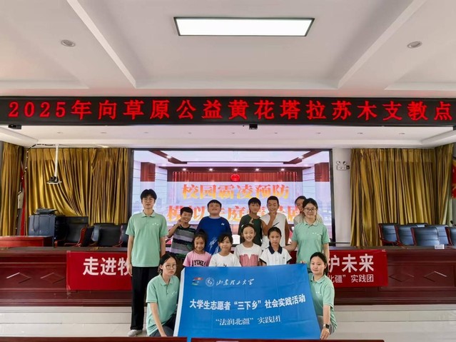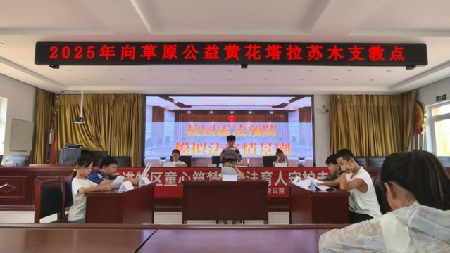 8月12日,“法润北疆”实践团走进内蒙古奈曼旗黄花塔拉苏木开展“预防校园霸凌”情景剧活动,将模拟法庭搬进草原课堂,为牧区的孩子普及法治知识。