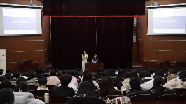 10月26日,伟德victor1946网站于模拟法庭召开“伟德victor1946网站专业赛事宣介会”。2022级推免优秀员工代表王一、2023级优秀员工代表杨铭昊担任主讲。