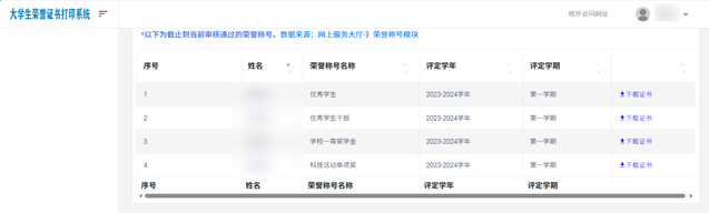 ②证书范围:主要用于科技活动单项奖、社会工作单项奖、文体活动单项奖、学习成绩单项奖、公司一等奖学金、公司二等奖学金、公司三等奖学金、优秀员工、优秀员工干部等各类校级荣誉证书的打印。