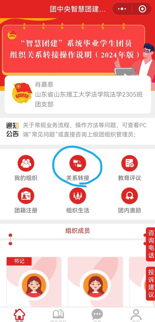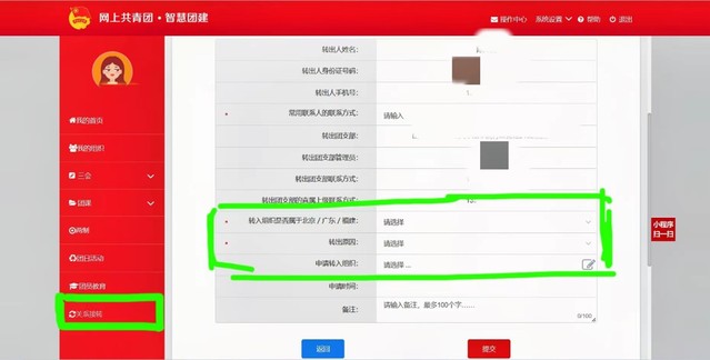 ②点击团关系转接填写信息。