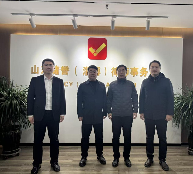 在淄博,公司领导一行走访山东推进智能装备有限公司总经理周贞,并参观山东储誉(淄博)律师事务所等校企合作单位。